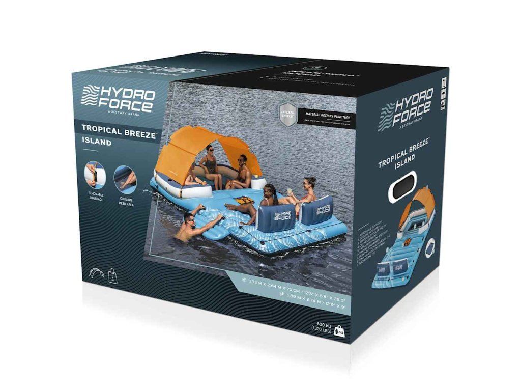 Pozvite si priateľov a oddychujte vo veľkom štýle na tomto nafukovacom ostrove Tropical Breeze 43105 od spoločnosti Bestway! Dá sa rýchlo nafúknuť aj vyfúknuť.
