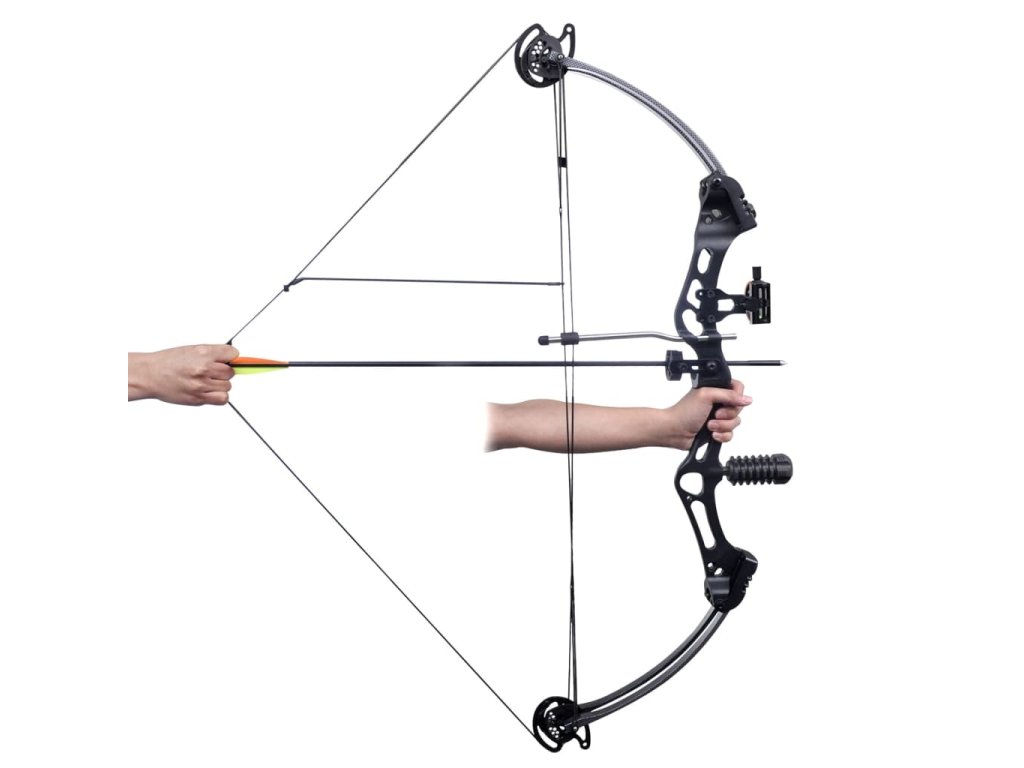 - Balíček obsahuje kladkový luk, šípy pre stabilizátor prietoku a meradlá