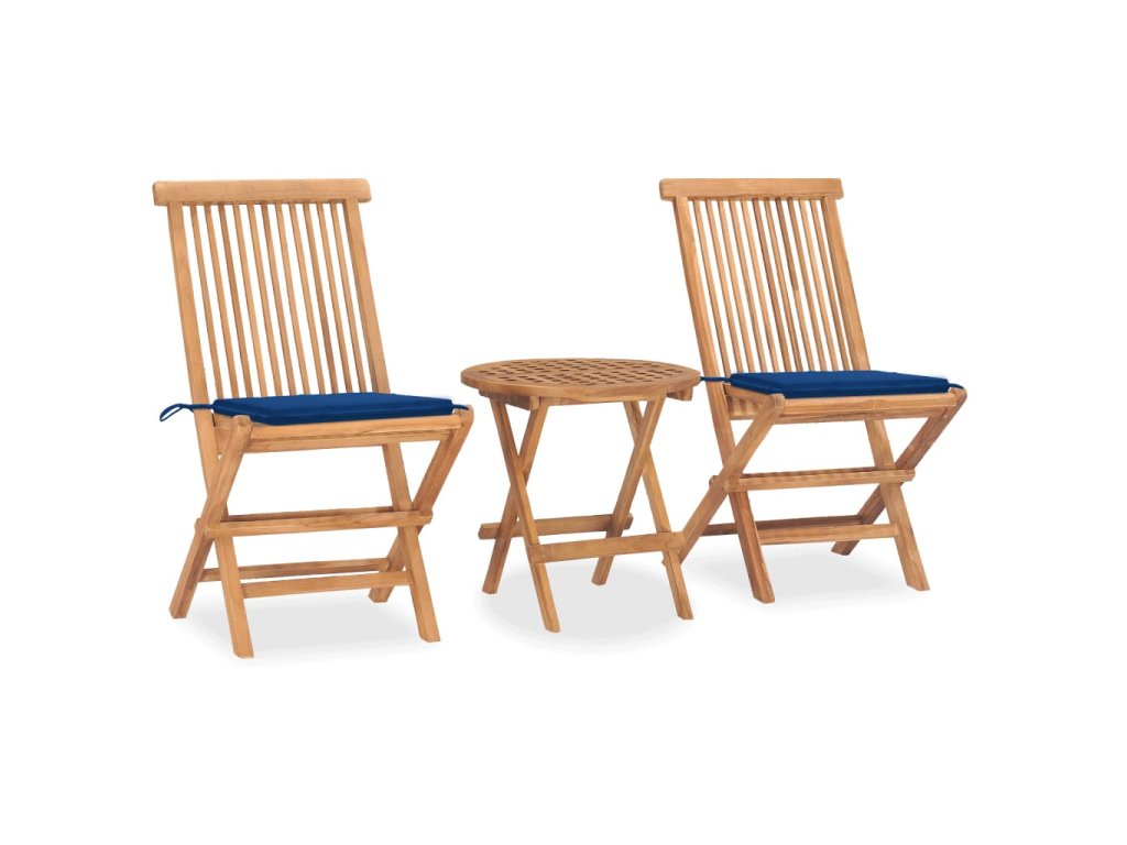 vidalXL 3-dielna skladacia vonkajšia jedálenská súprava+podložky, tík