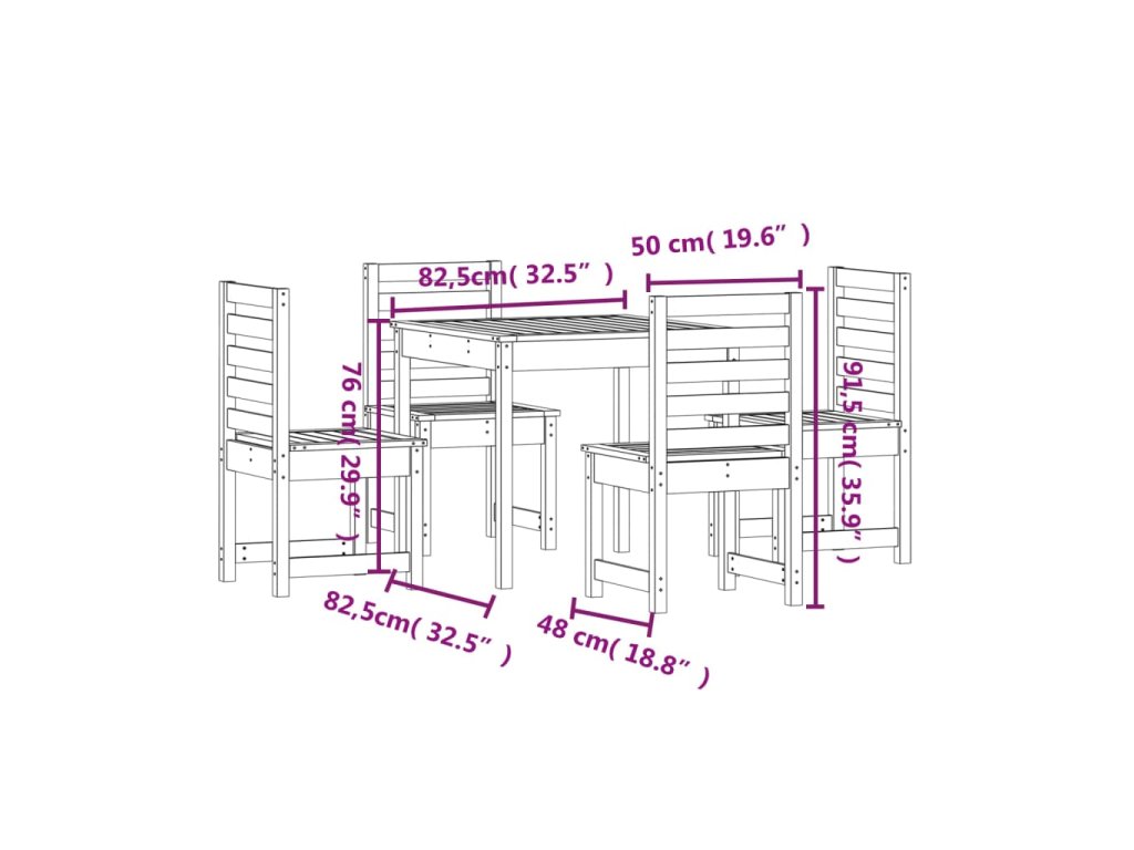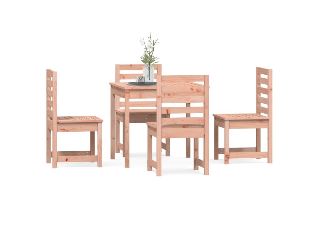 - Masívne douglasové drevo: Jedálenská súprava je vyrobená z masívneho douglasového dreva. Masívne douglasové drevo je vysoko odolné drevo, ktoré sa skvele hodí do exteriéru. Douglasové drevo je tiež pevné a vyžaduje si len malú údržbu aj pod vplyvom počasia.