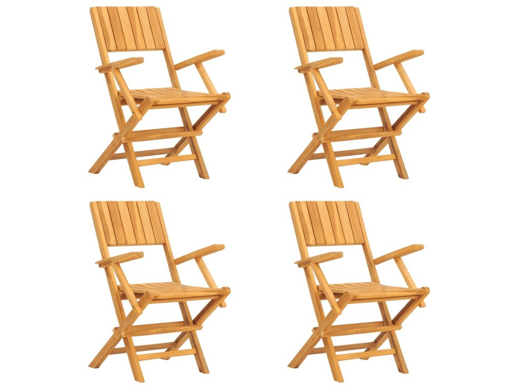 - Masívne teakové drevo: Táto jedálenská súprava je vyrobená z masívneho teakového dreva. Masívne teakové drevo je krásny prírodný materiál. Bolo vyzreté, umelo vysušené a jemne obrúsené, čo mu dalo veľmi hladký vzhľad. Teakové drevo je známe svojou výnimočnou pevnosťou a odolnosťou voči poveternostným vplyvom.
