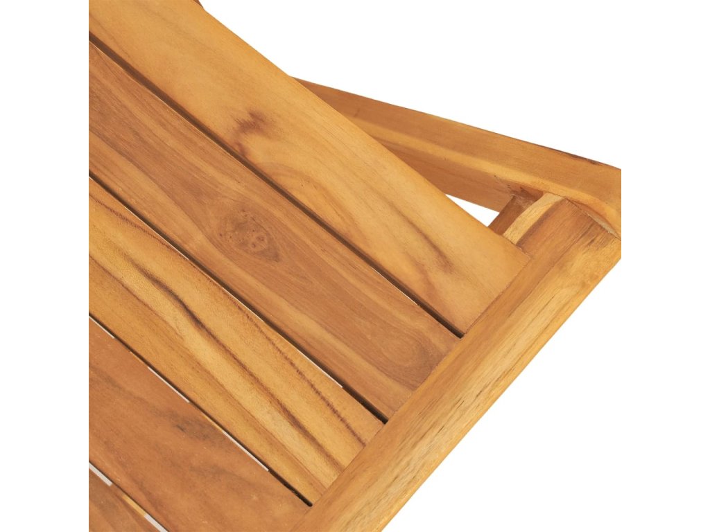 - Masívne teakové drevo: Táto jedálenská súprava je vyrobená z masívneho teakového dreva. Masívne teakové drevo je krásny prírodný materiál. Bolo vyzreté, umelo vysušené a jemne obrúsené, čo mu dalo veľmi hladký vzhľad. Teakové drevo je známe svojou výnimočnou pevnosťou a odolnosťou voči poveternostným vplyvom.