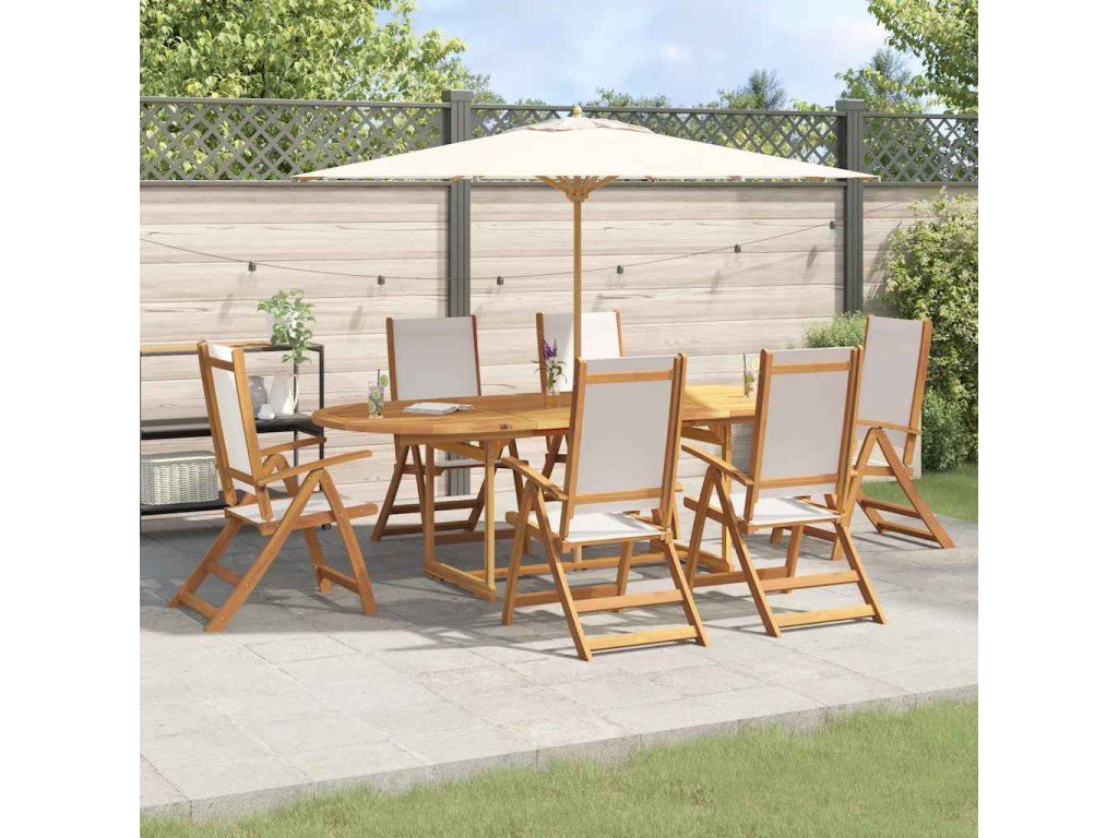 vidalXL 7-dielna záhradná jedálenská súprava akáciový masív a textilén