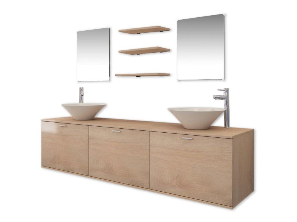 vidaXL 10-dielna sada nábytku do kúpeľne umývadlami a batériami béžová