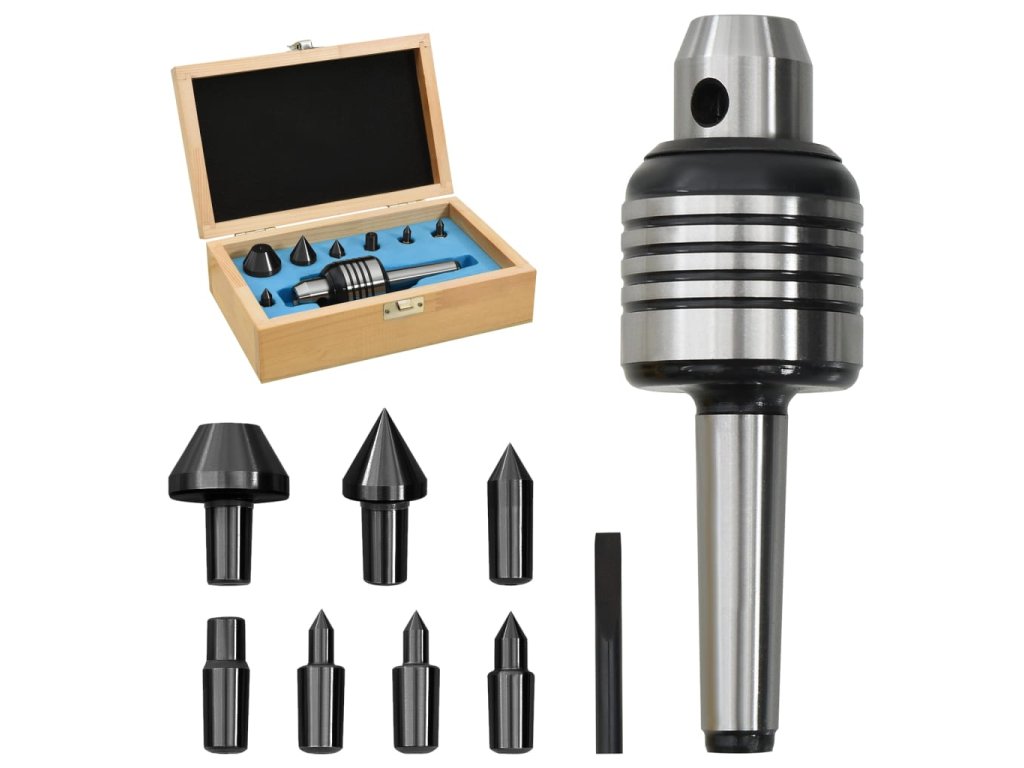 Pomocou tejto súpravy otočných hrotov vrátane 7 vymeniteľných hláv možno bezpečne a presne obrábať dlhé, tenké a ťažké obrobky. Pomocou polohovania stredového otvoru budú mať obrobky vysokú rozmerovú presnosť.