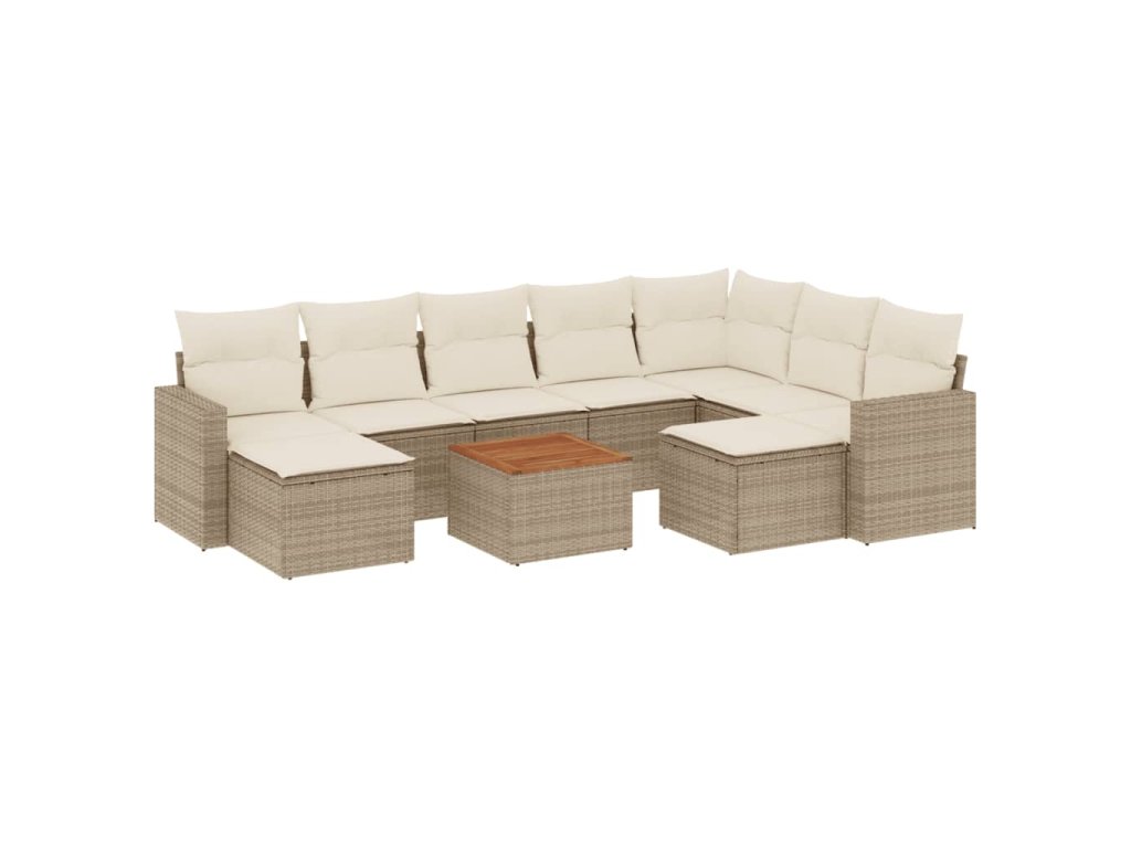 vidaXL 10-dielna záhradná sedacia súprava a vankúše béžová polyratan