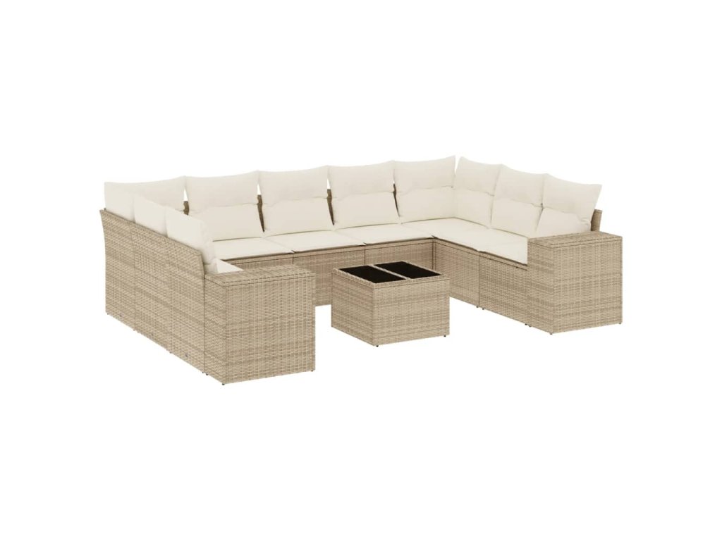 vidaXL 10-dielna záhradná sedacia súprava a vankúše béžová polyratan