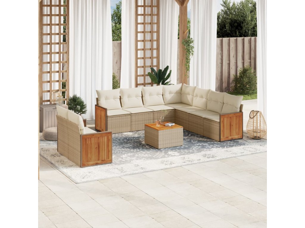 vidaXL 10-dielna záhradná sedacia súprava a vankúše béžová polyratan