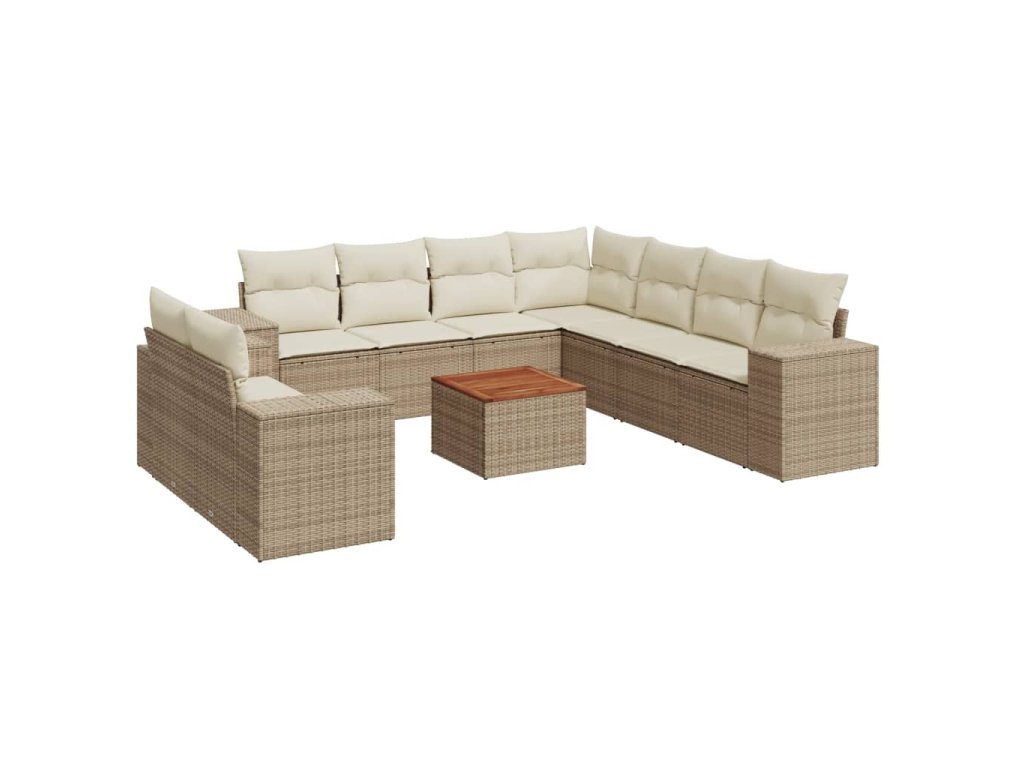 vidaXL 10-dielna záhradná sedacia súprava a vankúše béžová polyratan