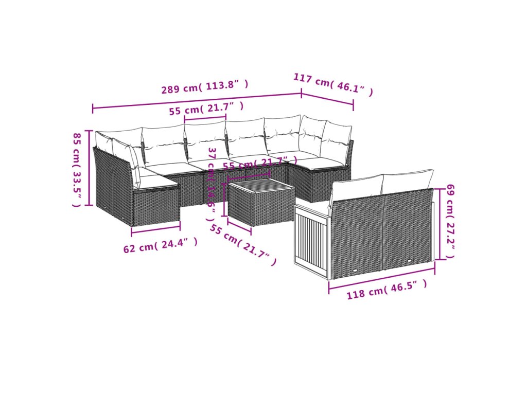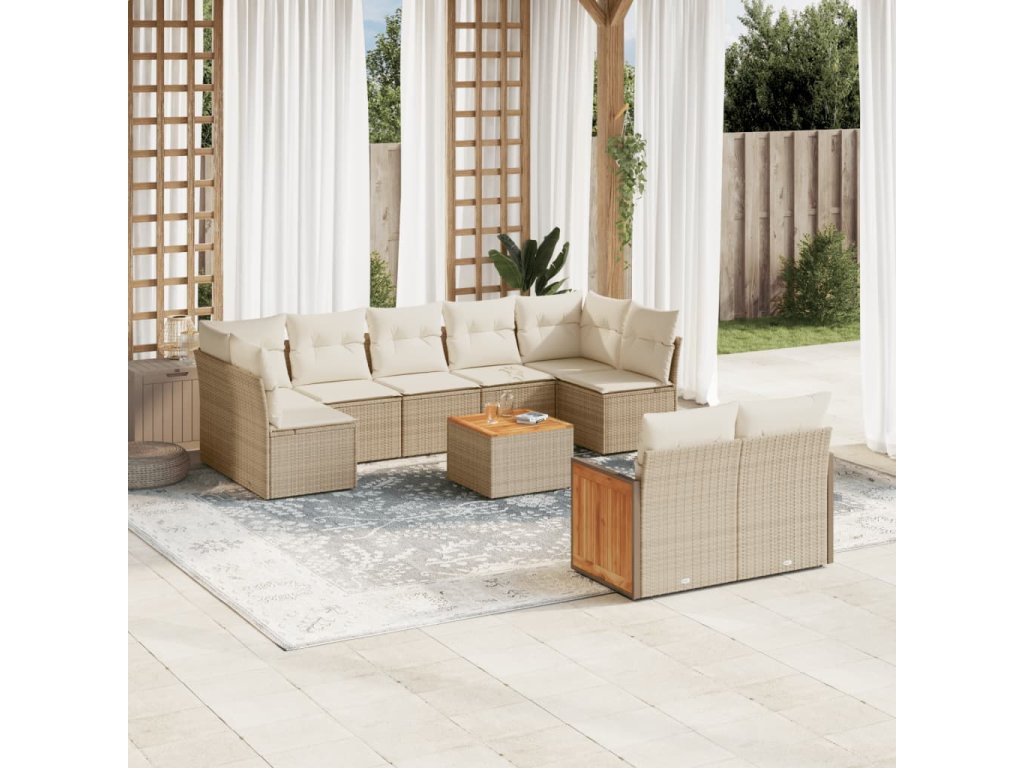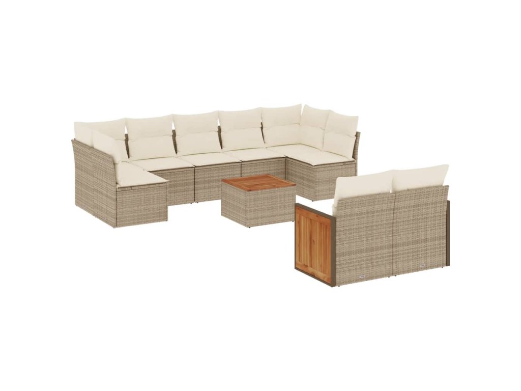 vidaXL 10-dielna záhradná sedacia súprava a vankúše béžová polyratan
