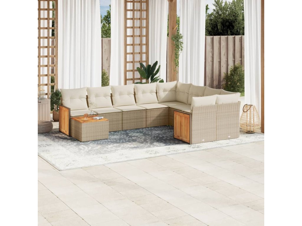 vidaXL 10-dielna záhradná sedacia súprava a vankúše béžová polyratan