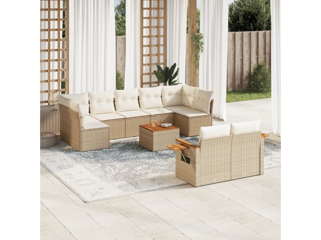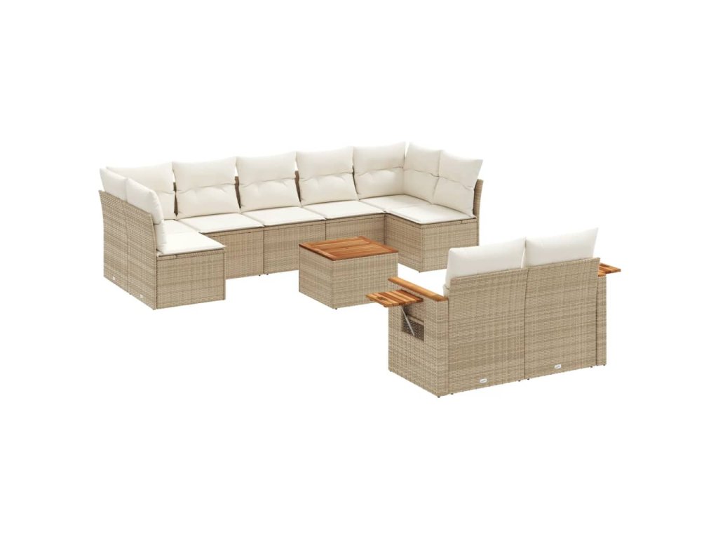 vidaXL 10-dielna záhradná sedacia súprava a vankúše béžová polyratan