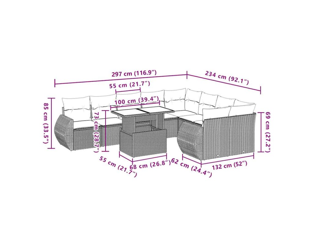 vidaXL 10-dielna záhradná sedacia súprava a vankúše béžová polyratan