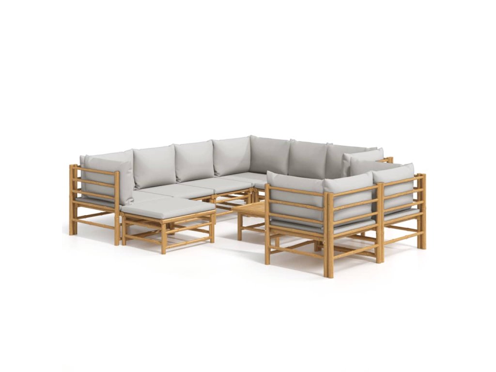 vidaXL 10-dielna záhradná sedacia súprava bledosivé vankúše bambus