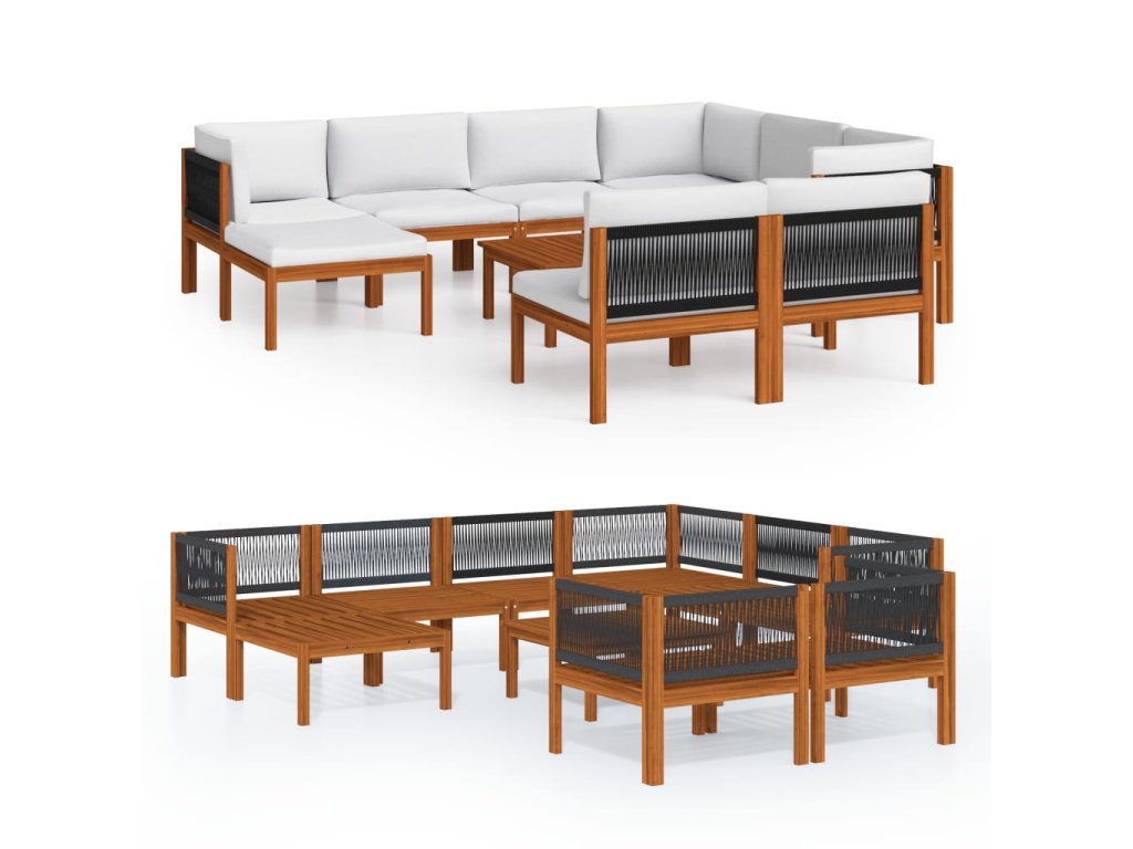 vidaXL 10-dielna záhradná sedacia súprava+podložky, krémová, akácia