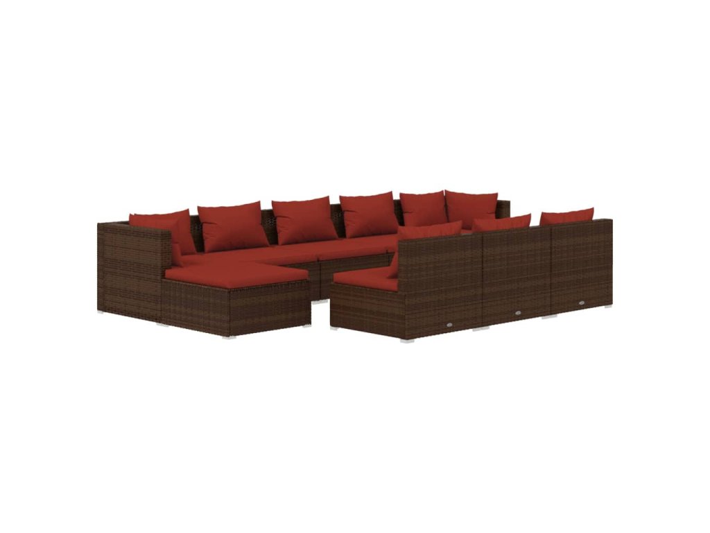vidaXL 10-dielna záhradná sedacia súprava s vankúšmi hnedá polyratan