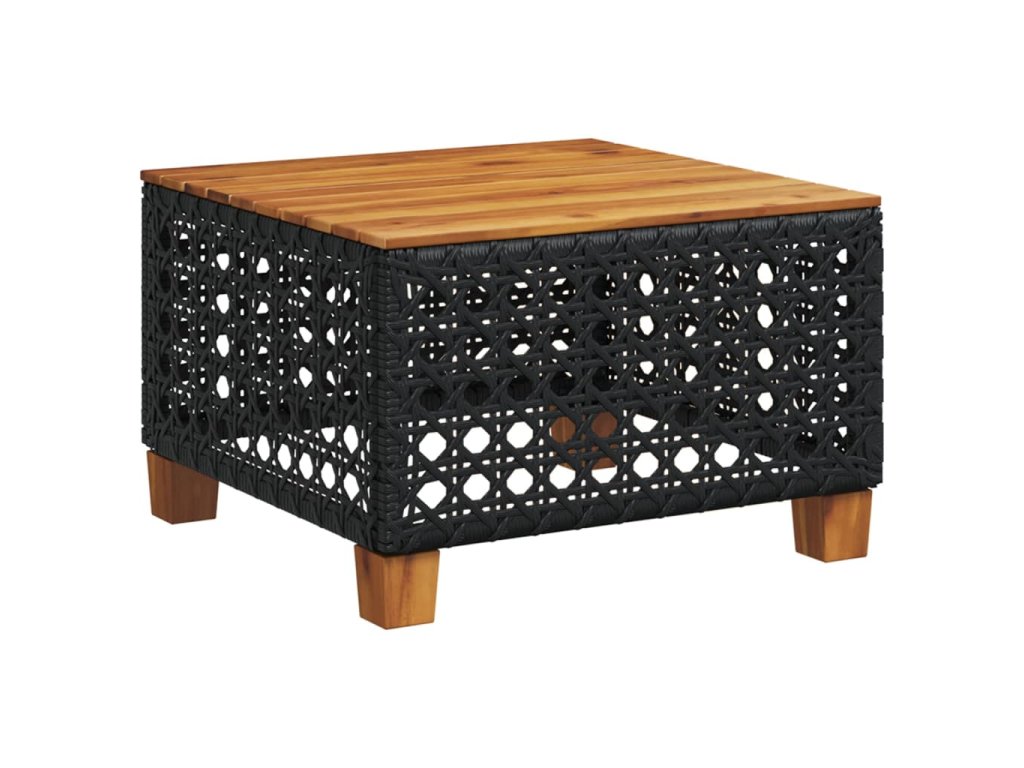- Materiál: PE (polyetylén) ratan, oceľ s práškovou povrchovou úpravou, akáciový masív s prírodným olejovým náterom
