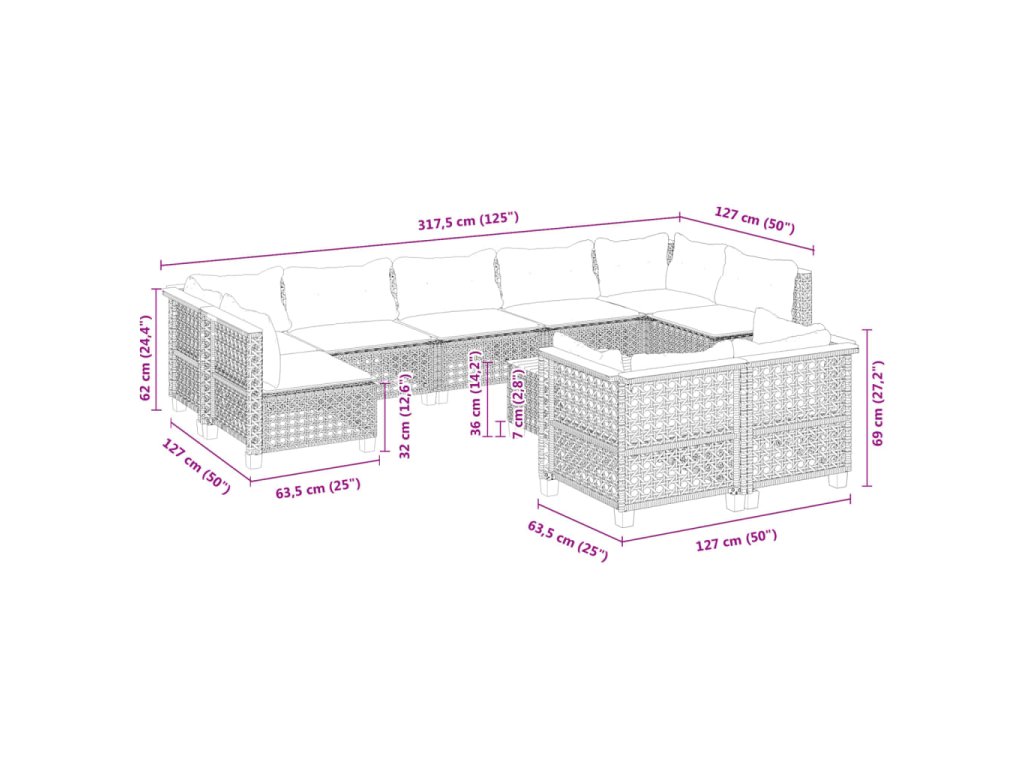 vidaXL 10-dielna záhradná sedacia súprava s vankúšmi polyratan čierna