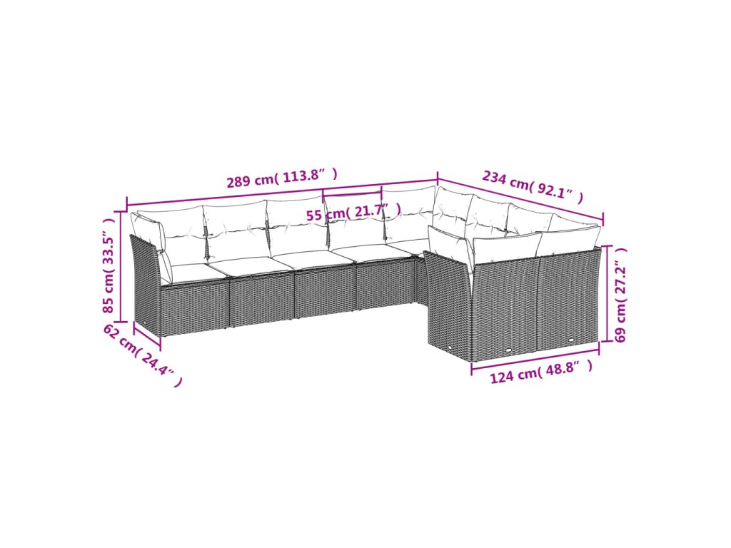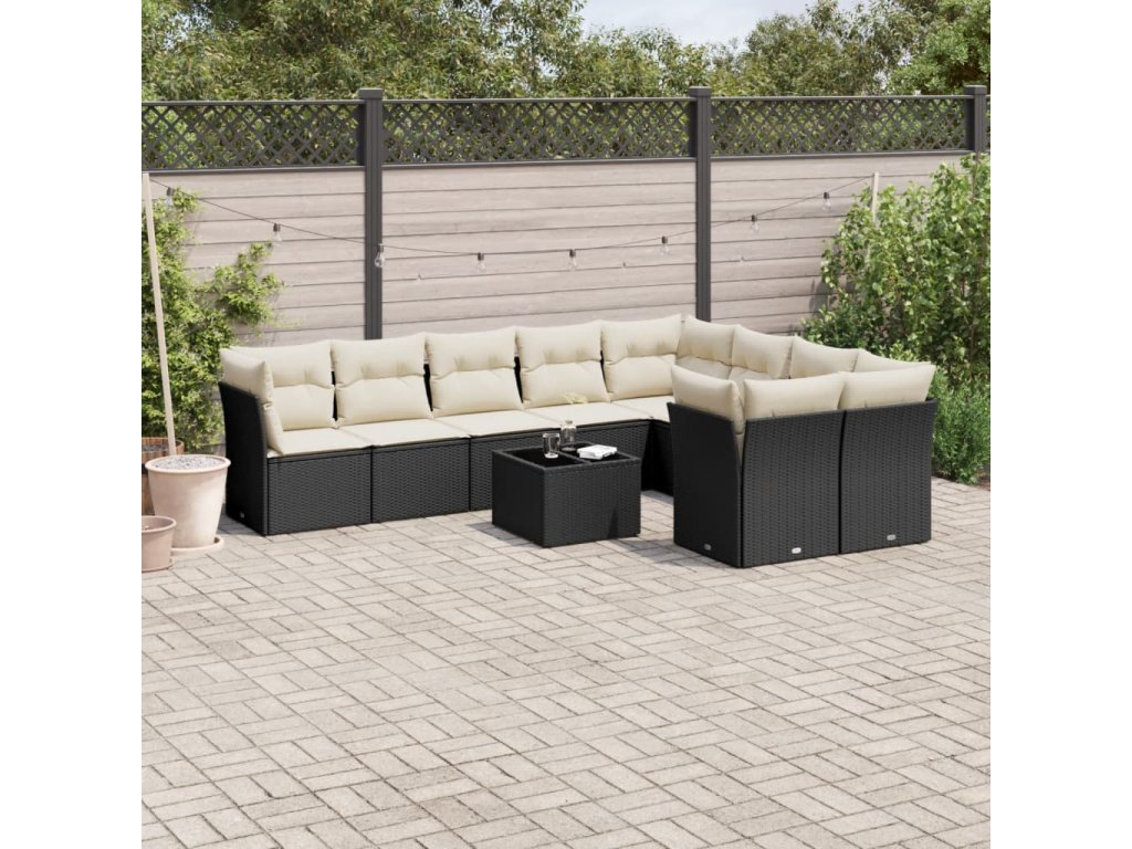 vidaXL 10-dielna záhradná sedacia súprava s vankúšmi polyratan čierna