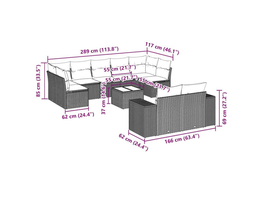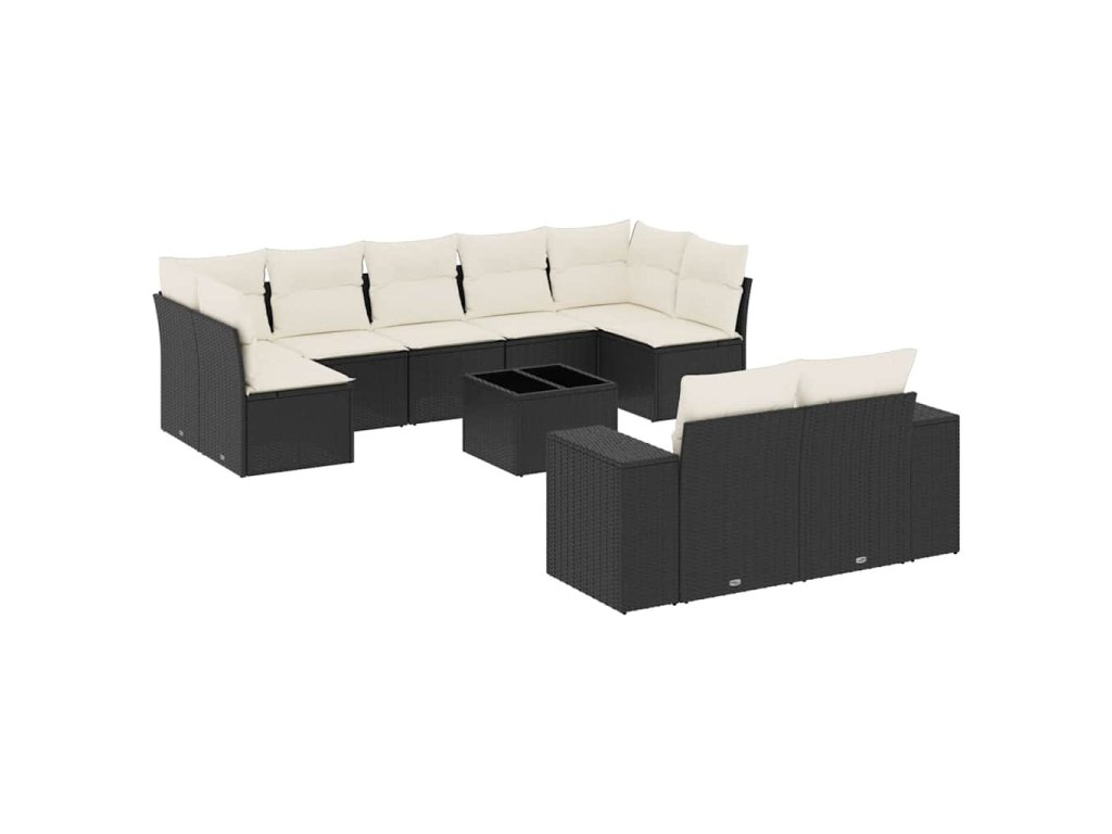 vidaXL 10-dielna záhradná sedacia súprava s vankúšmi polyratan čierna