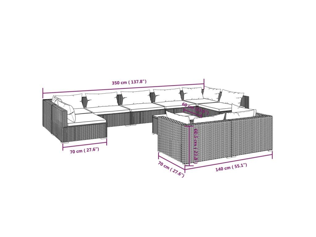 vidaXL 10-dielna záhradná sedacia súprava s vankúšmi polyratan čierna