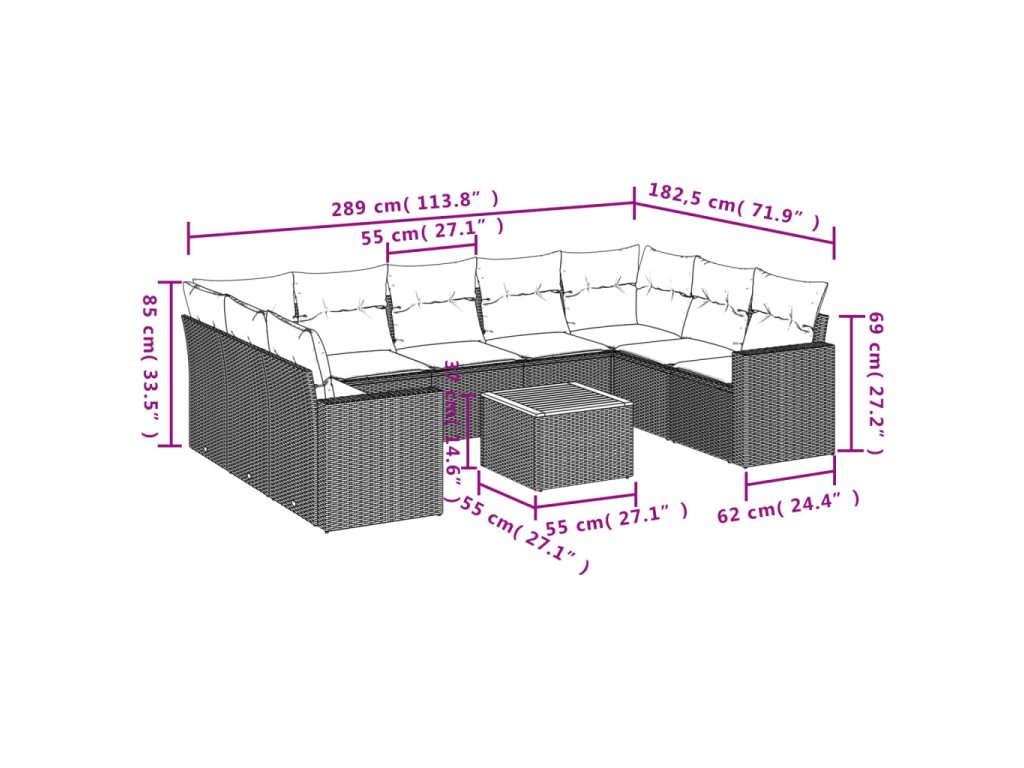 vidaXL 10-dielna záhradná sedacia súprava s vankúšmi polyratanová sivá