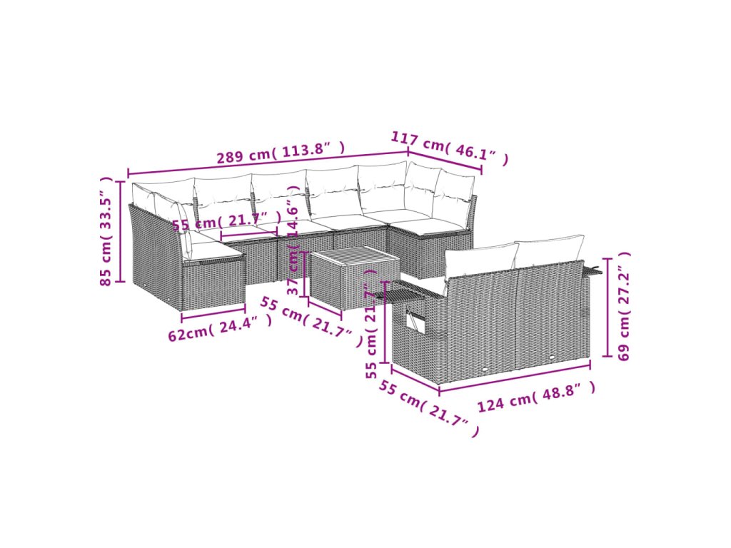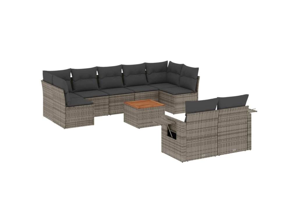 vidaXL 10-dielna záhradná sedacia súprava s vankúšmi polyratanová sivá