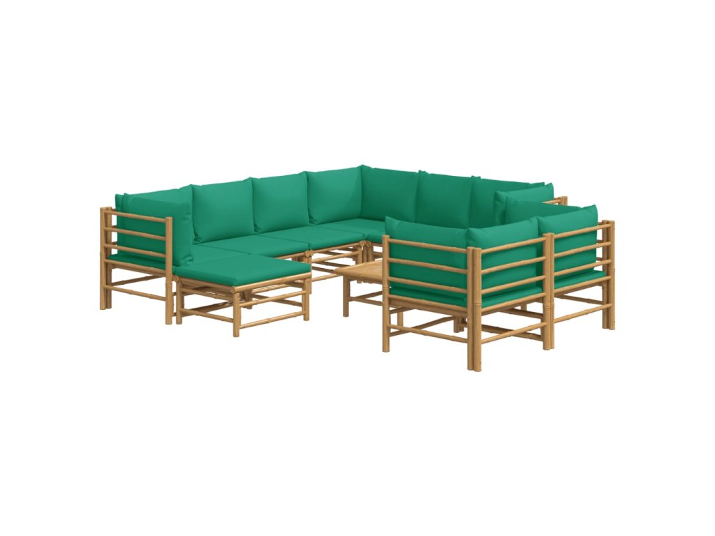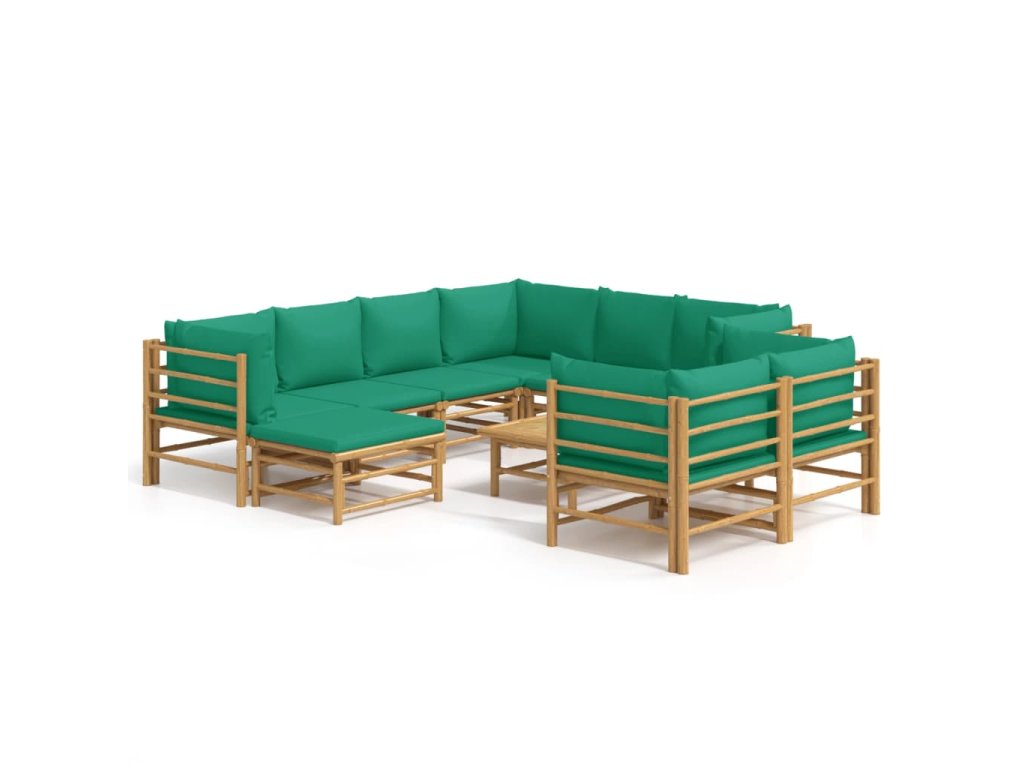 vidaXL 10-dielna záhradná sedacia súprava zelené vankúše bambus