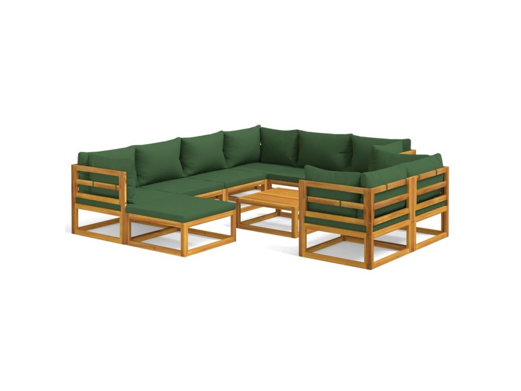 vidaXL 10-dielna záhradná sedacia súprava zelené vankúše masív