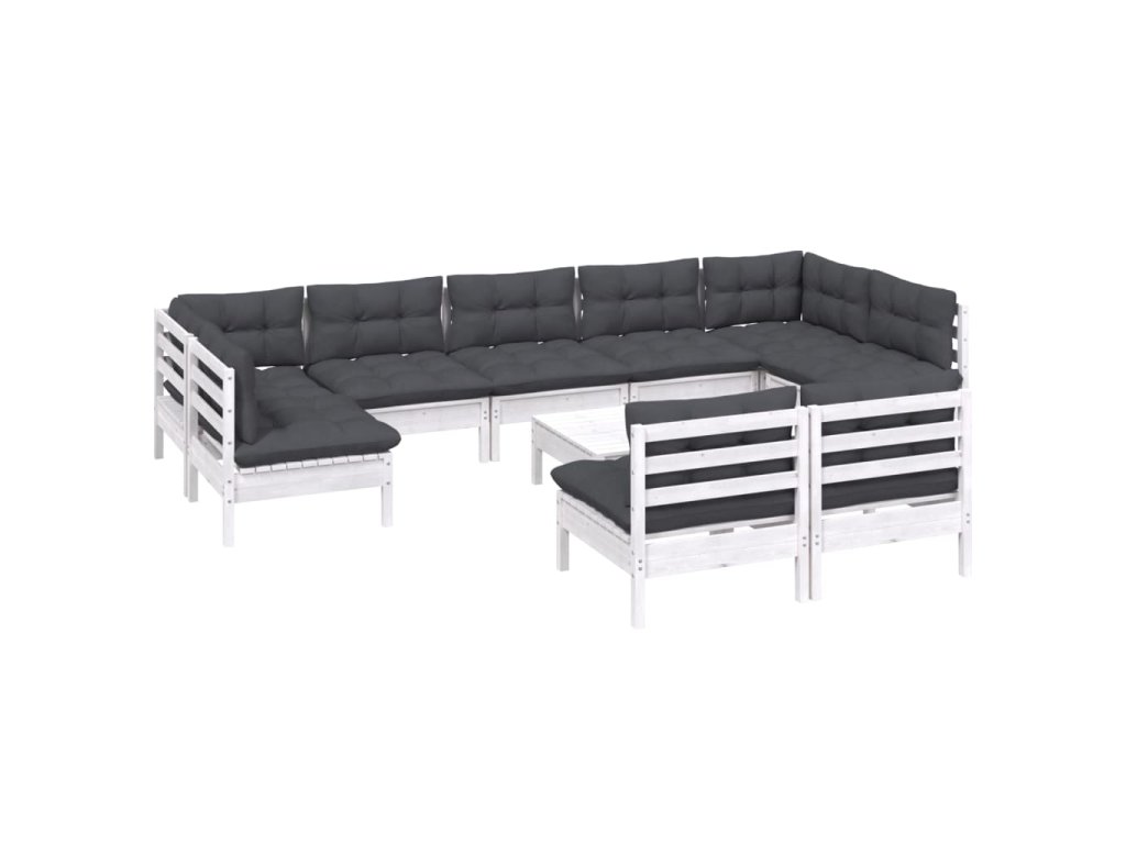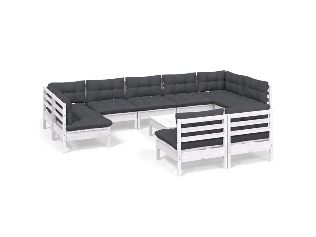 vidaXL 10-dielna záhradná súprava s vankúšmi biela borovicový masív