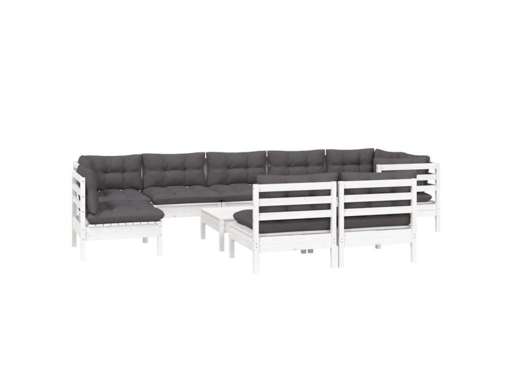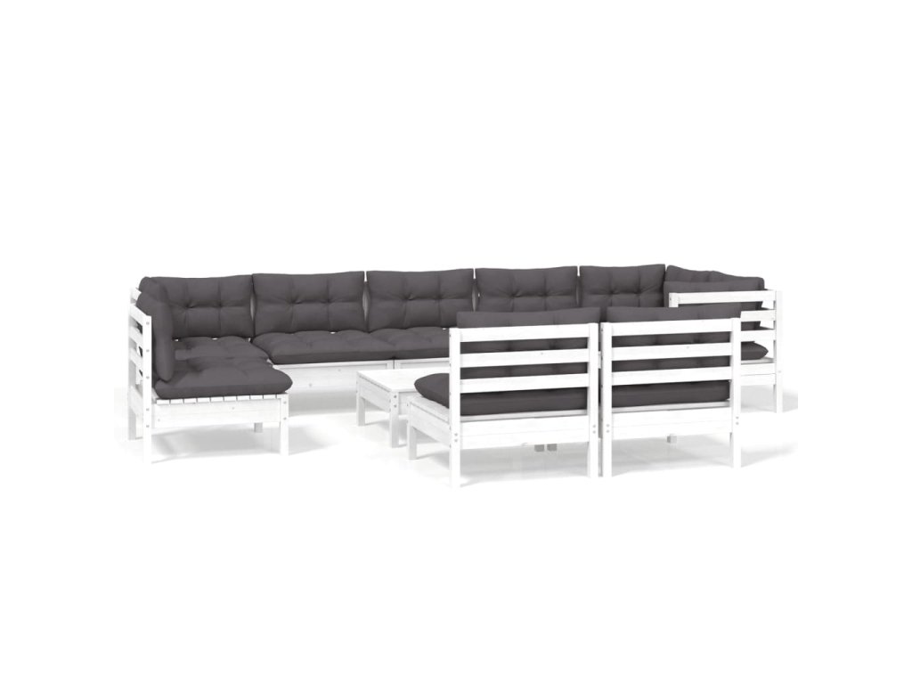 vidaXL 10-dielna záhradná súprava s vankúšmi biela borovicový masív