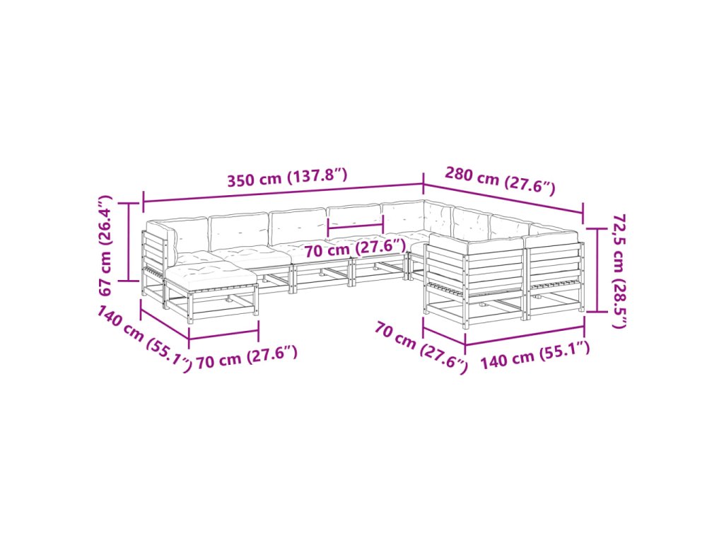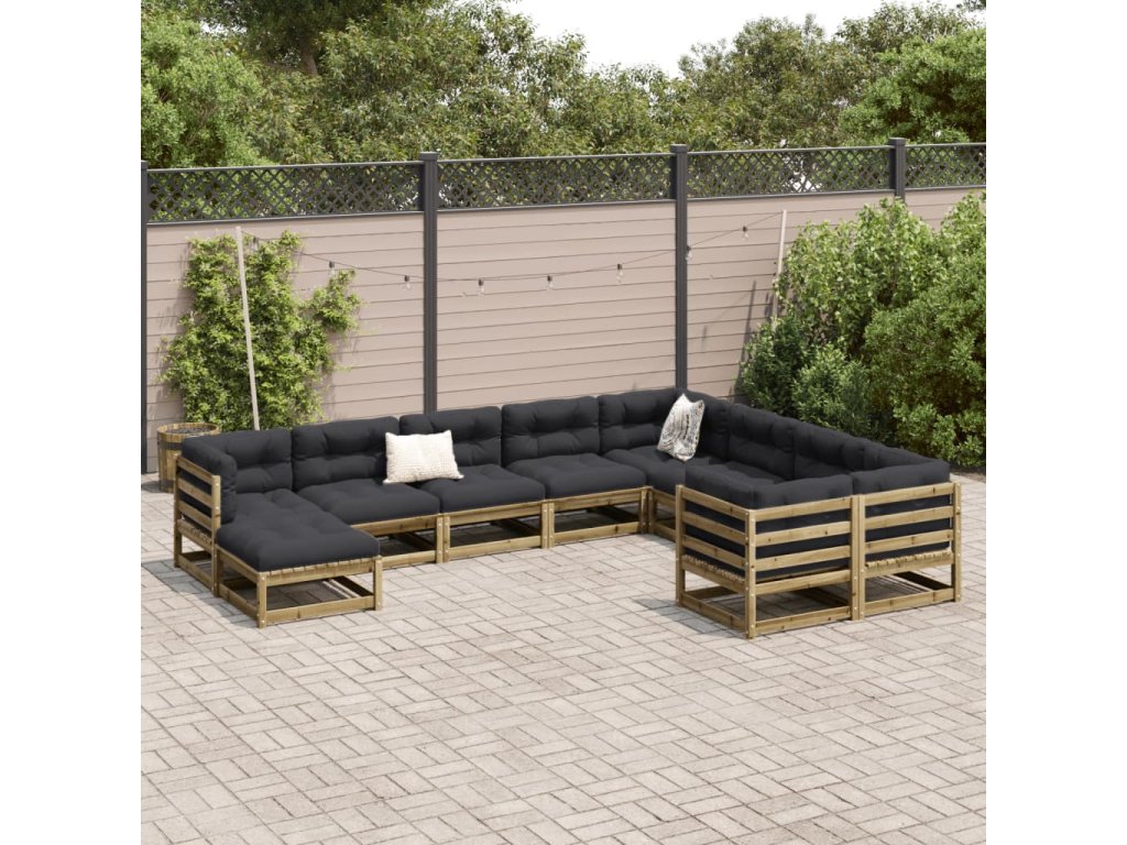 vidaXL 10-dielna záhradná súprava s vankúšmi impregnovaná borovica
