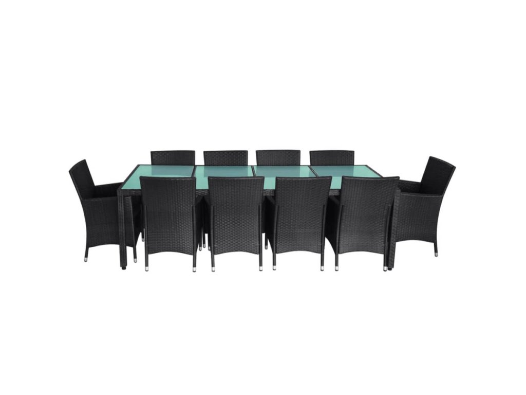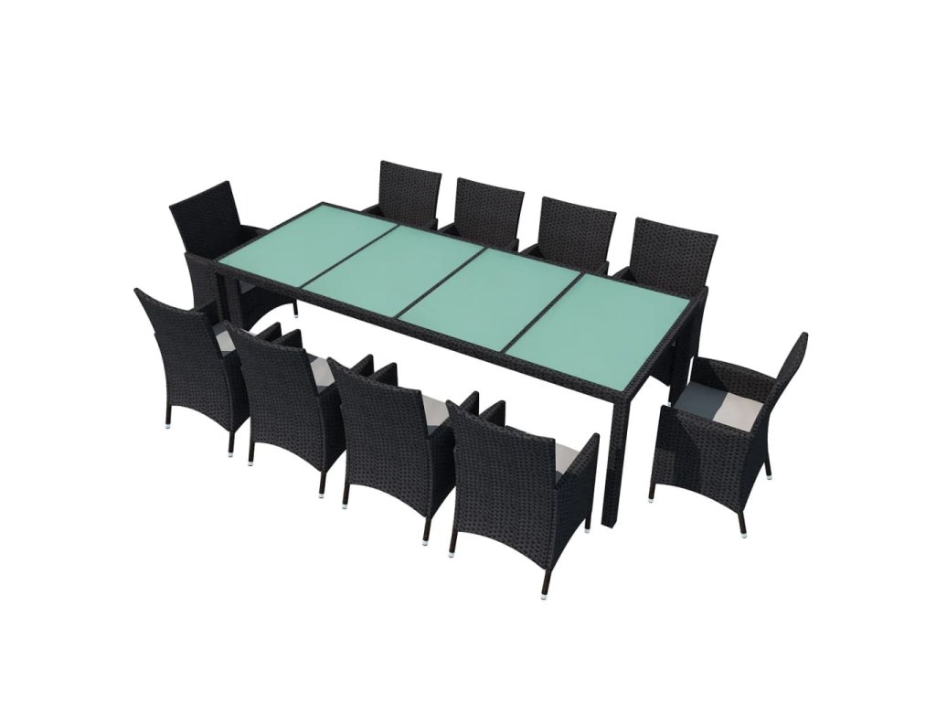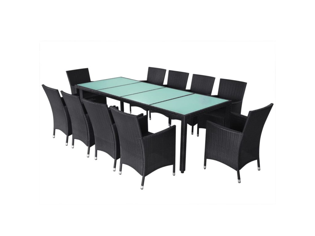vidaXL 11-dielna vonkajšia jedálenská súprava s vankúšmi polyratan čierna