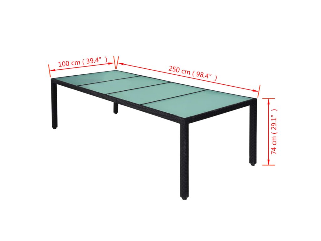 - Rozmery stola: 250 x 100 x 74 cm (D x Š x V)