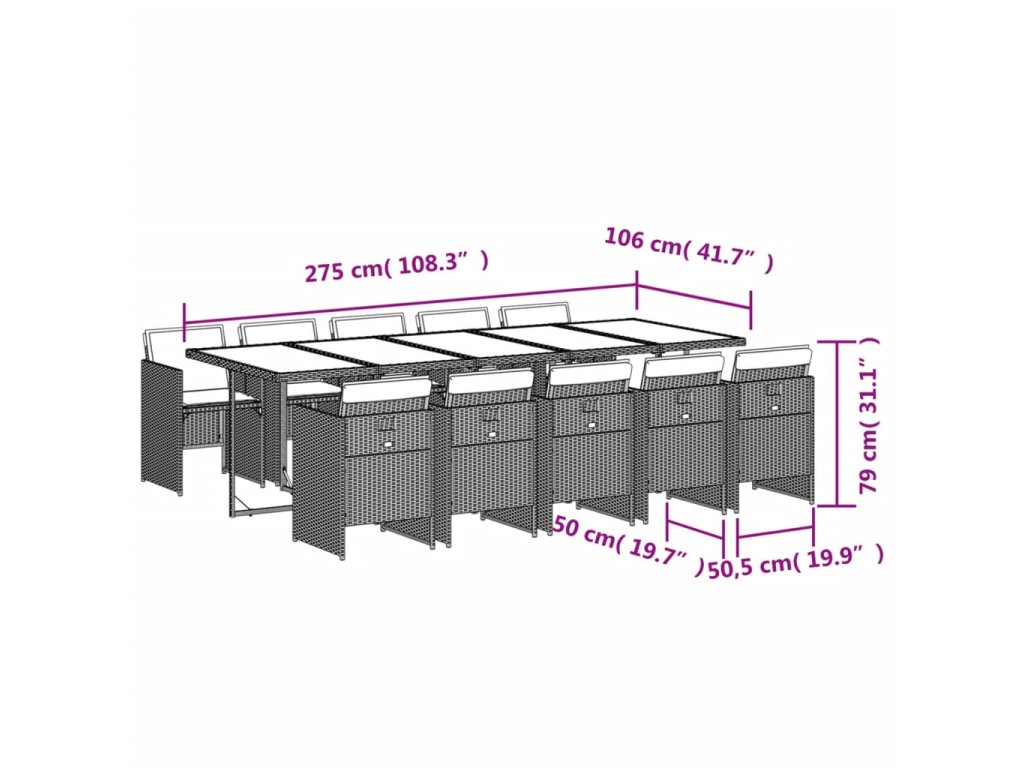 vidaXL 11-dielna záhr. jedálenská súprava vankúše svetlosivá polyratan