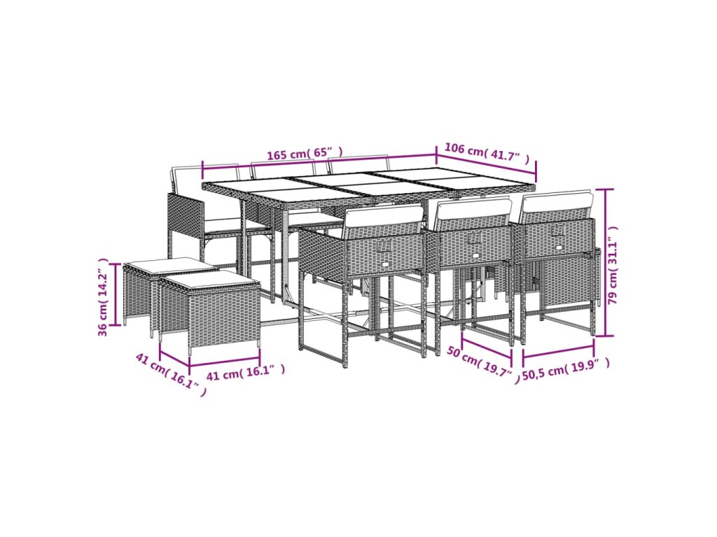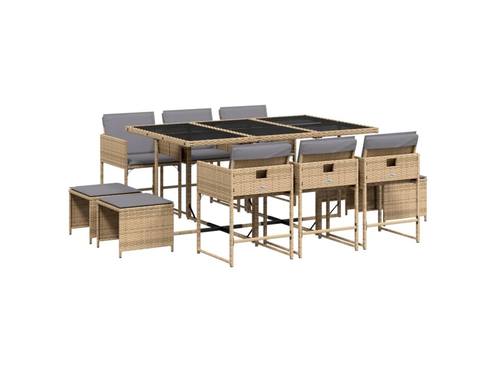 vidaXL 11-dielna záhrad. jedálenská sada vankúše mix béžovej polyratan