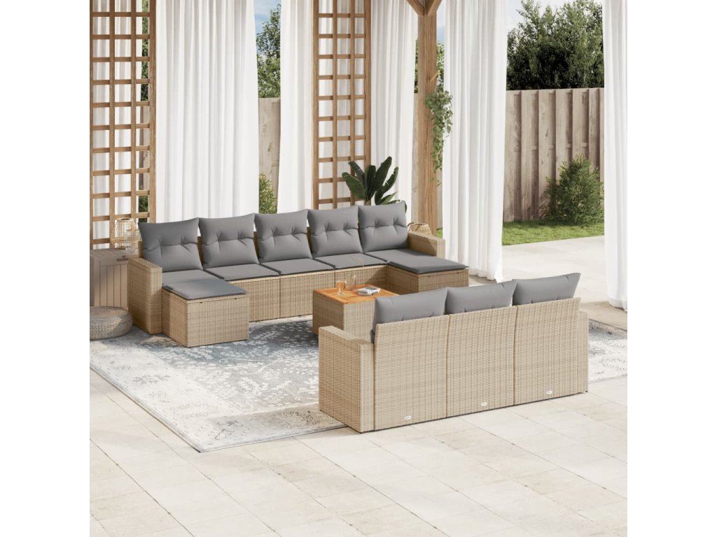 vidaXL 11-dielna záhrad. jedálenská sada vankúše mix béžovej polyratan