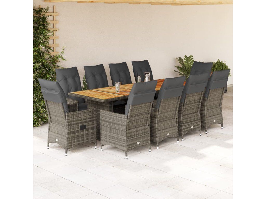 vidaXL 11-dielna záhradná bistro súprava s vankúšmi sivá polyratan