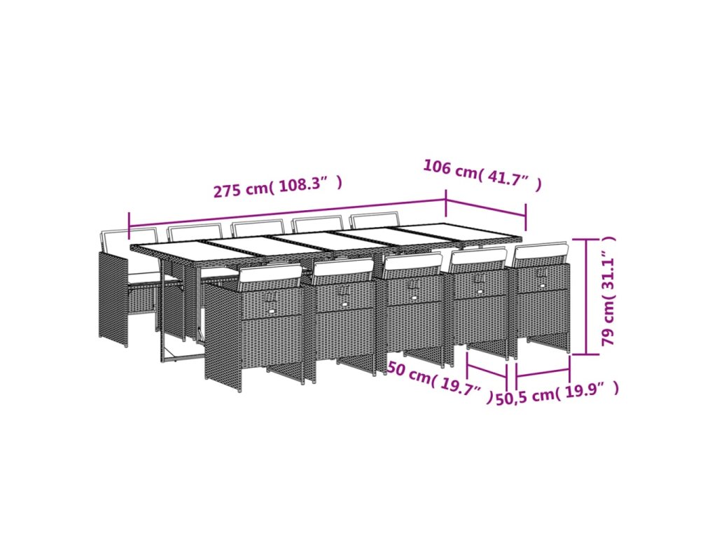 - Rozmery: 275 x 106 x 73 cm (D x Š x V)