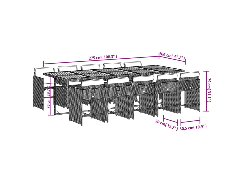 - Materiál: PE ratan, oceľ s práškovou povrchovou úpravou, akáciový masív