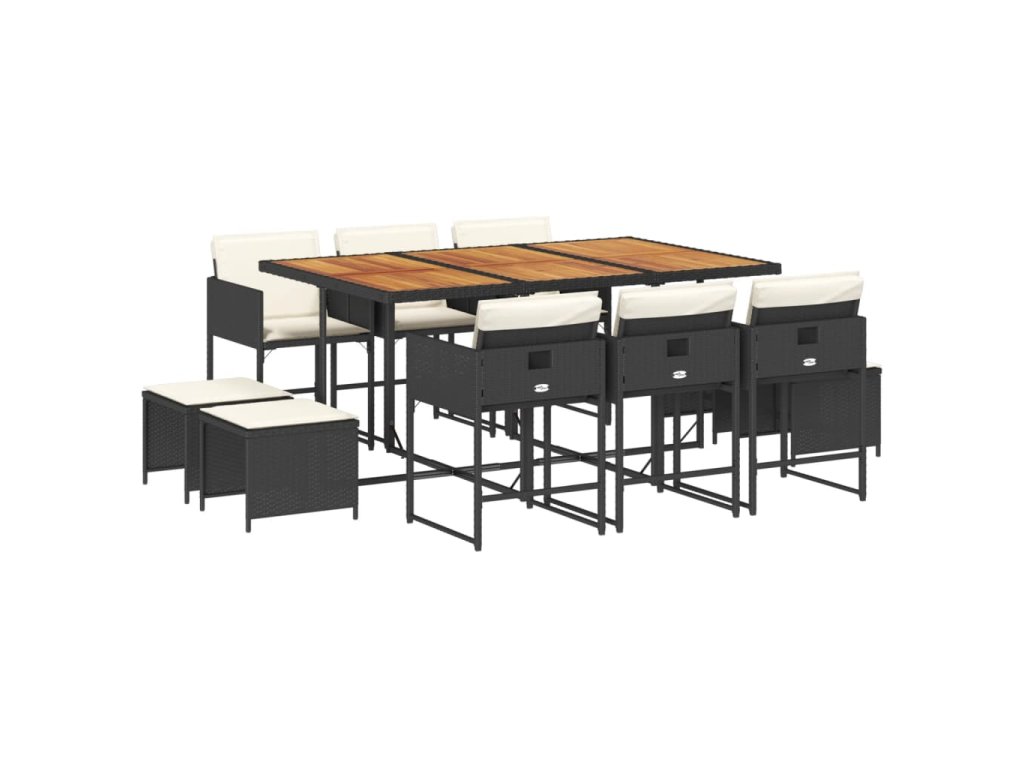 vidaXL 11-dielna záhradná jedálenská sada s vankúšmi čierna polyratan