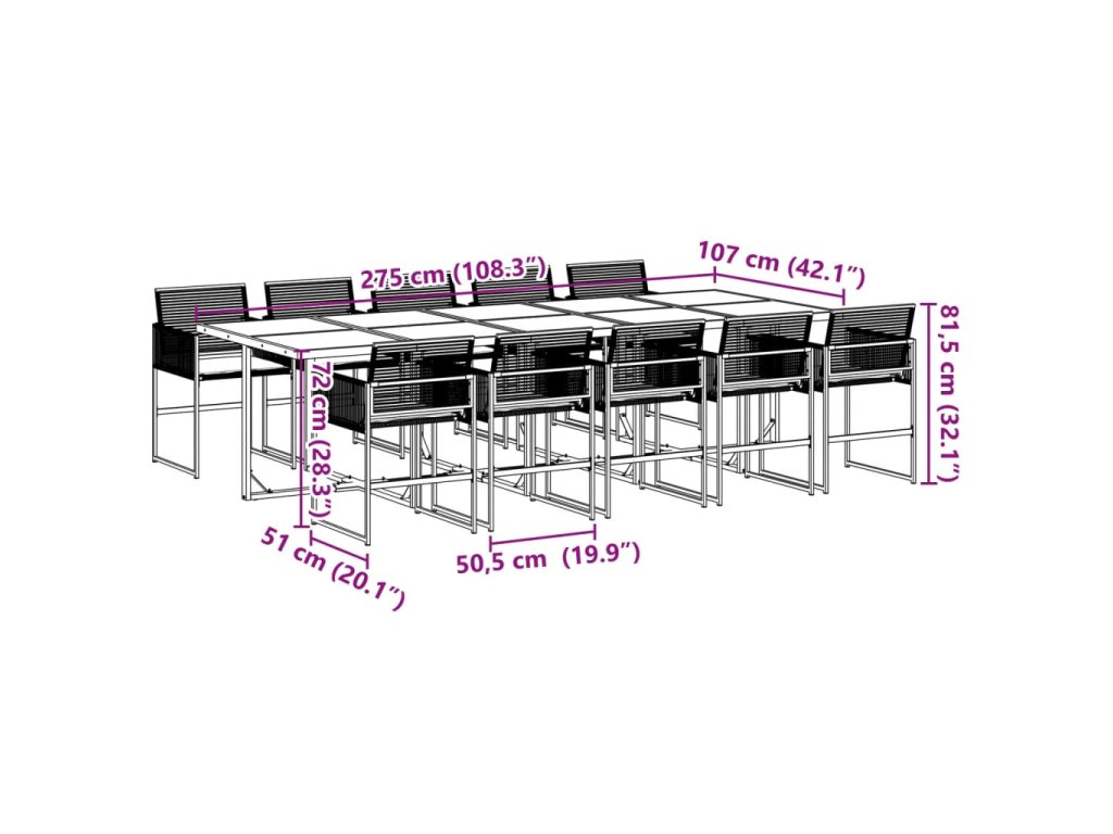 - Rozmery stola: 275 x 107 x 72 cm (D x Š x V)