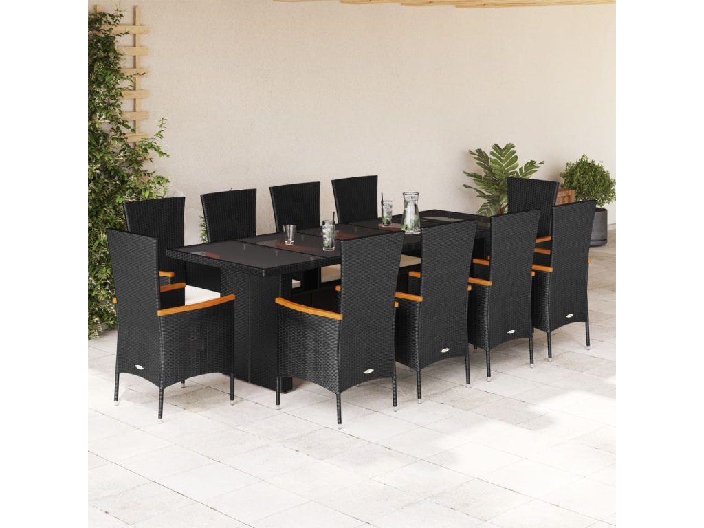 vidaXL 11-dielna záhradná jedálenská sada s vankúšmi čierna polyratan