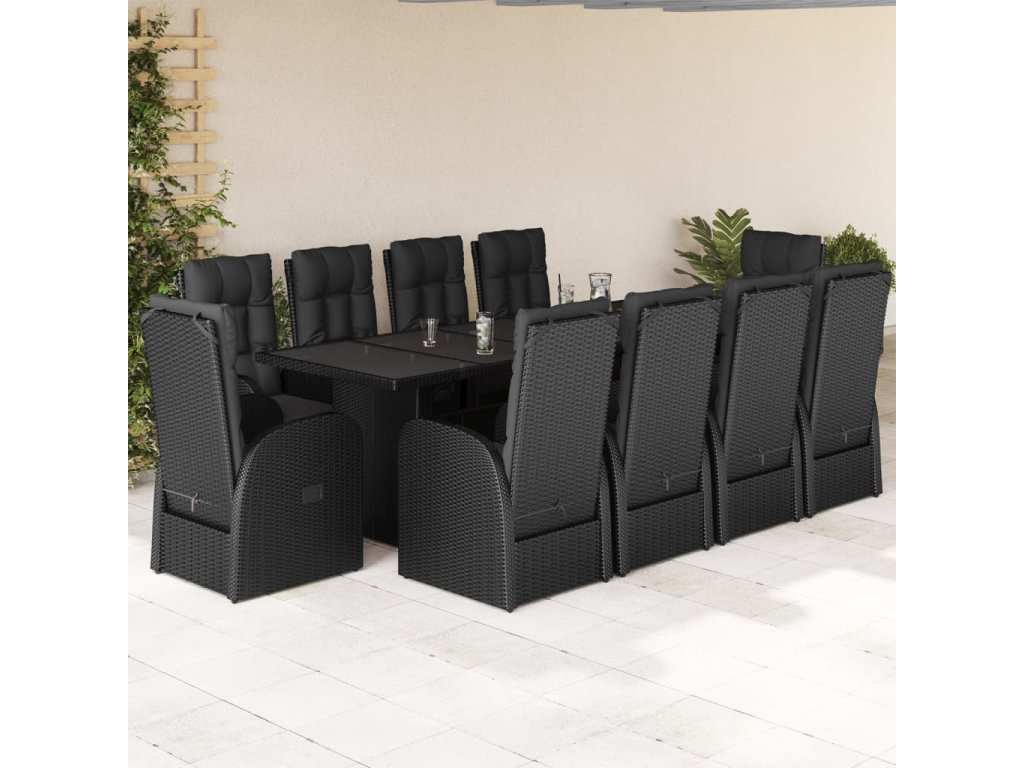 vidaXL 11-dielna záhradná jedálenská sada s vankúšmi čierna polyratan