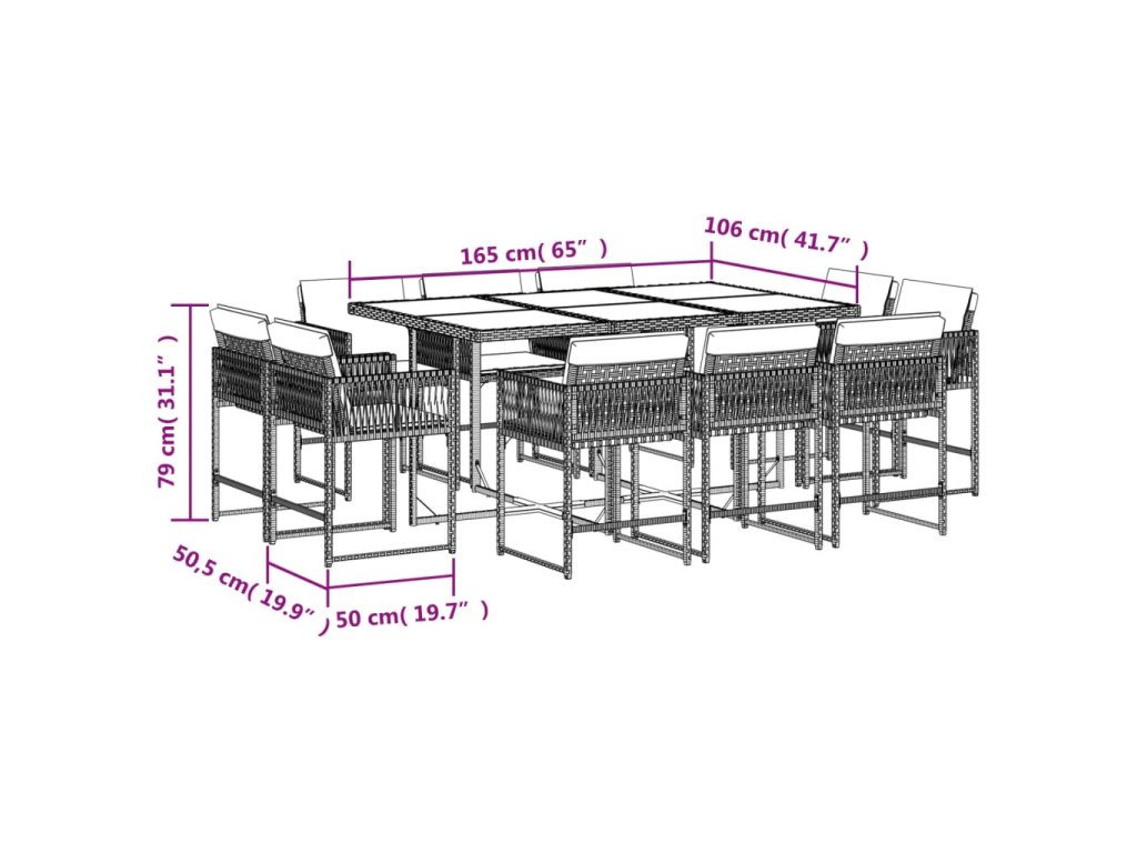 vidaXL 11-dielna záhradná jedálenská sada s vankúšmi čierna polyratan