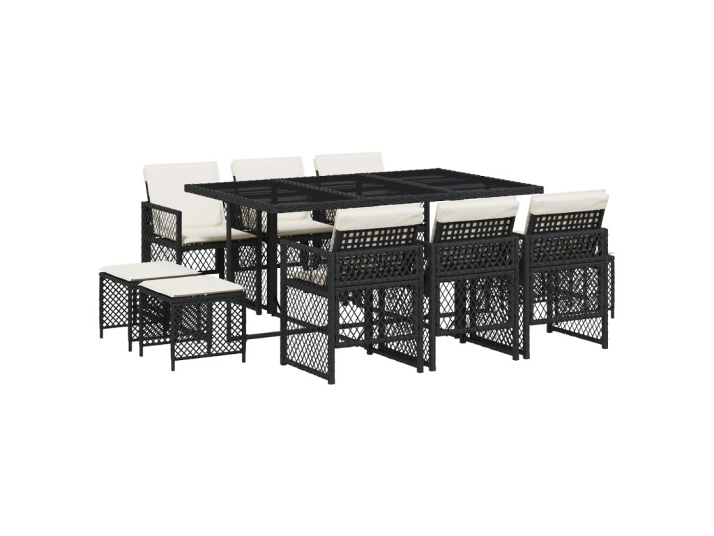 vidaXL 11-dielna záhradná jedálenská sada s vankúšmi čierna polyratan