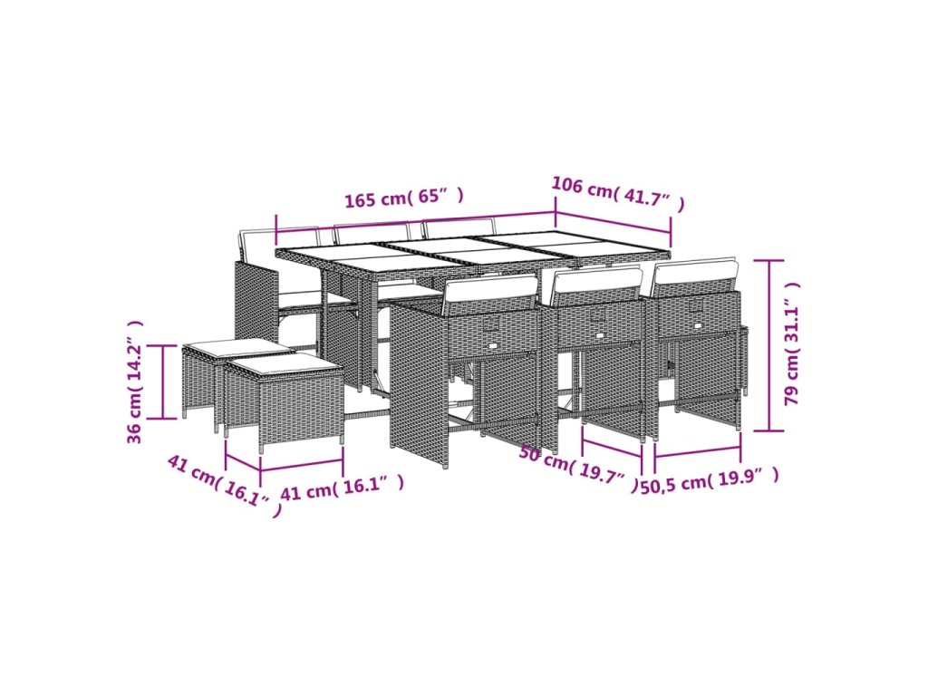 vidaXL 11-dielna záhradná jedálenská sada s vankúšmi čierna polyratan
