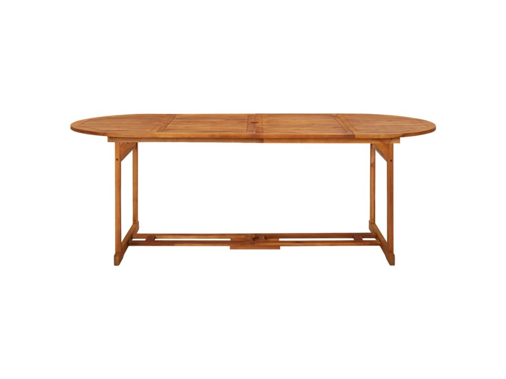 Vonkajšia jedálenská súprava je vyrobená z akáciového masívu, tropického tvrdého dreva, ktoré je trvácne a odolné voči poveternostným vplyvom, a tak vám vydrží dlhé roky. Povrch s olejovým náterom sa dá ľahko očistiť navlhčenou handričkou. Stoličky na terasu sa navyše dajú poskladať do kompaktných rozmerov, aby nezaberali veľa miesta, keď ich nepoužívate.