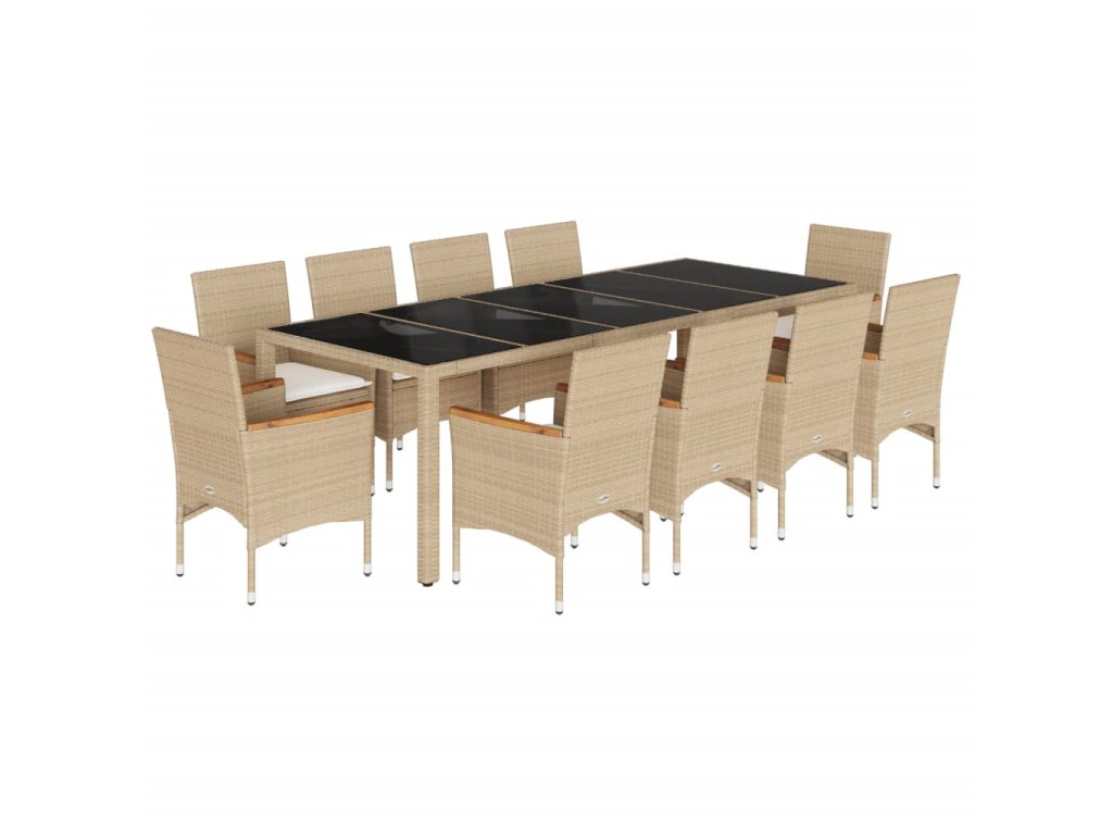 vidaXL 11-dielna záhradná jedálenská súprava+podložky béžová polyratan