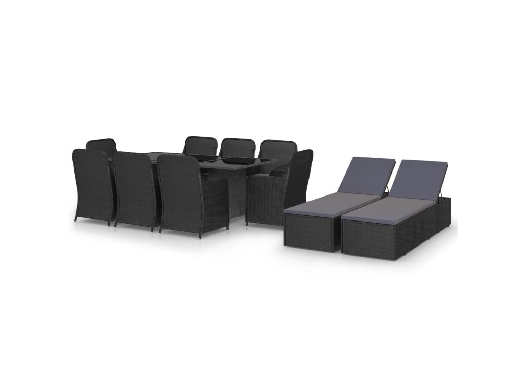 vidaXL 11-dielna záhradná jedálenská súprava polyratanová čierna